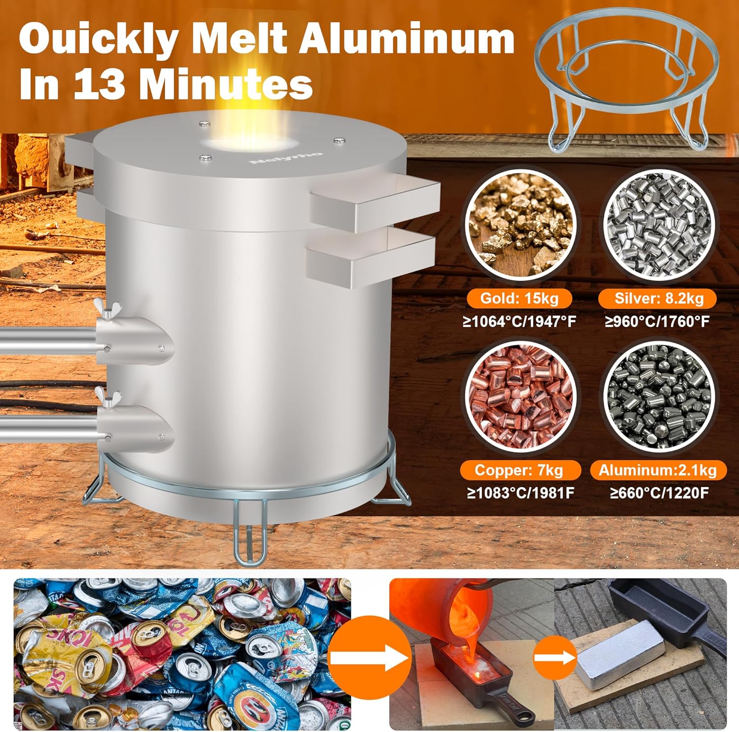 Nelyrho Propane Smelting Furnace Kit – 12kg Crucible, Support Stand, Tongs Included – Stainless Steel Foundry Melting Furnace for at-Home Metal Melting of Aluminum, Gold, Silver, and Copper Scrap